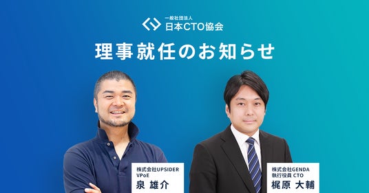 一般社団法人 日本CTO協会(本社:東京都渋谷区/代表理事:松岡剛志、以下:日本CTO協会)は、2024年9月6日より株式会社UPSIDER VPoE 泉 雄介氏、株式会社GENDA 執行役員 CTO 梶原 大輔氏が新理事に就任したことをお知らせいたします。