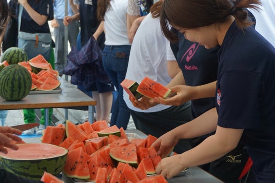学校法人行吉学園 神戸女子大学・神戸女子短期大学(本部:神戸市中央区)は、今年度も、「すいか祭り」を須磨キャンパス、ポートアイランドキャンパスで開催します。教職員が切り分けた旬のすいかを、キャンパスいっぱいに集まった学生たちに振る舞い、健康を祈願する伝統行事です。 キャンパス内の学生や教職員が一堂に会し「冷えたすいか」を食べて、 コミュニケーションを深め、楽しくひと時を過ごす、本学ならではの夏の風物詩です。鳥取県産のすいかを仕入れ、直前までキンキンに冷やし昼休みに提供します。