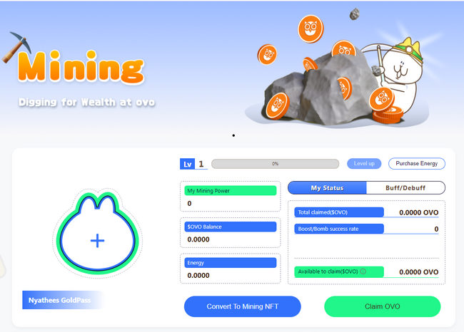 Miningを行う操作は非常にシンプルであり、3★~6★レベルのにゃっちーずNFTをスロットに嵌めこむと$OVOトークンが産出される仕組みです。また、NFTのレベルが高ければ高いほど、より多くの$OVOトークンを貰えることが可能ですが、勿論、トークンを大量に貯めこむためにはある程度の攻略方法を習得する必要があります。