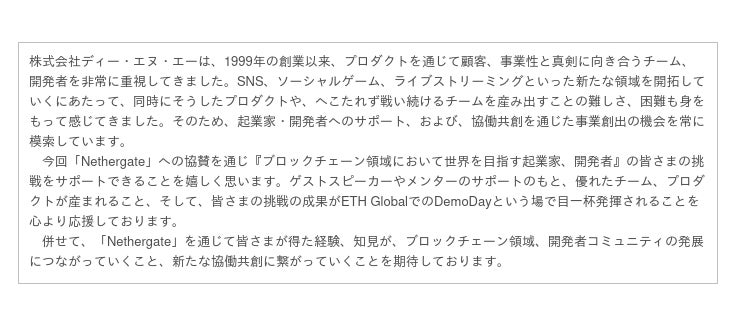 プラチナスポンサーとしてご協賛いただいた、株式会社ディー・エヌ・エーからメッセージをいただいております。