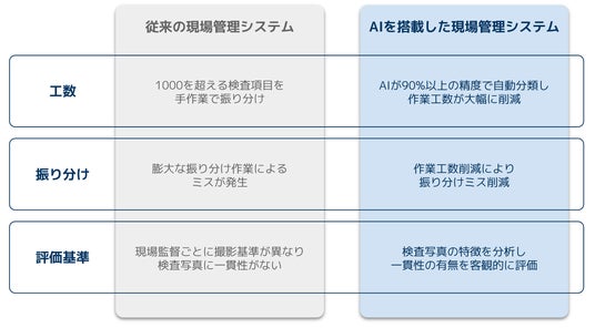 これらの課題に対応し、現場監督の業務効率を飛躍的に向上させるとともに、より正確な品質管理を実現することを目的として、名監督システムの追加機能として本システムの開発に着手しました。