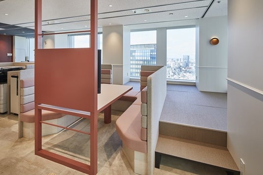 ガラス2面になっているため景観が活かされて解放感があり、急なオンライン会議にも手軽に利用できるため、使い勝手の良い新しい要素となりました。