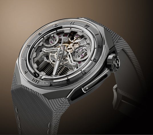 また、機械式ムーブメントはエネルギーを伝達し、レトログラード流体時間表示に命を吹き込みます。毎時28,000振動(4Hz)の振動数と72時間のパワーリザーブを備えた画期的な352部品キャリバーは、完全に進化した絶対確実なムーブメントですが、ユニークでもあります。そのエキゾチックなルックスだけでなく、テクノロジーにも驚かされます。例えば、目立つように配置された一対の小さなベローは合金製で、壁の厚さは人間の髪の毛のわずか4分の1で、従来のダイバーズウォッチの10,000倍の防水性があります。