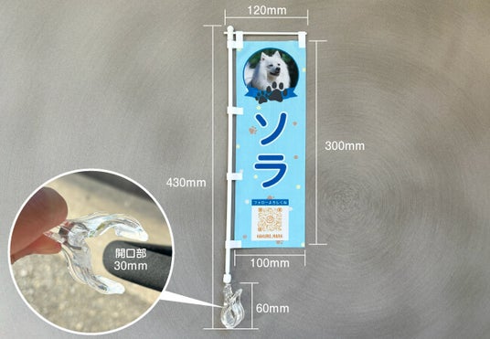 豊富なデザインから選べるオリジナルミニのぼりで、ペットとのお出かけやイベントがもっと楽しく、写真映えもバッチリ。クリップ付きでペットカートに簡単に取り付けられます。