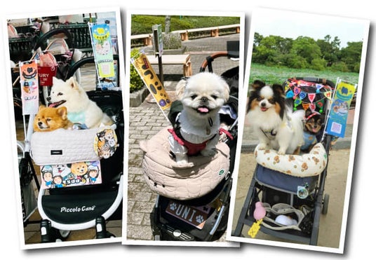 ペットカートに簡単に取り付けられるので、ドッグラン、カフェ、サークルイベント、オフ会など、さまざまな場面で活躍します。