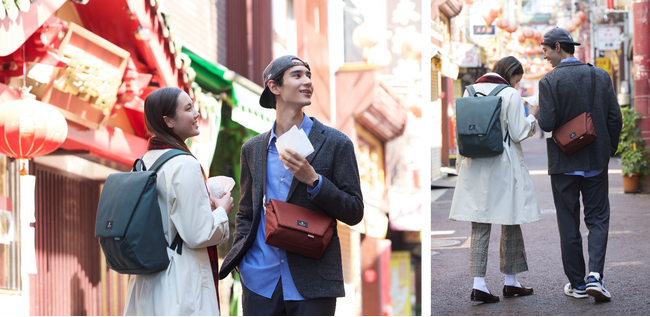 ※左からバックパック(ダークグリーン)、メッセンジャーS(テラコッタ)、メッセンジャーL(ダークグリーン)
