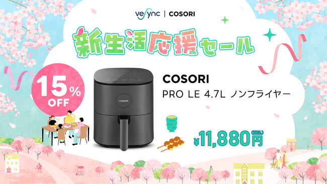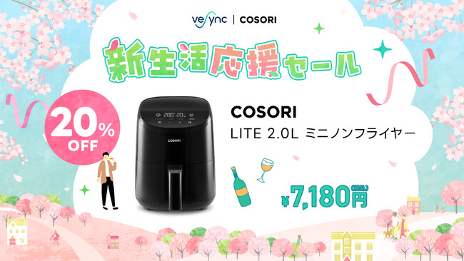 新生活を始める皆様へのエールとして、VeSyncは特に暮らしをより快適に変える人気製品をセール対象とします。時短料理に大活躍のCOSORIノンフライヤー、花粉対策に役に立つLevoit空気清浄機が共に最大20%OFFです。Etekcity 体重・体組成計製品はさらに最大28%OFFでご提供させていただきます。ぜひこの機会にご検討ください。