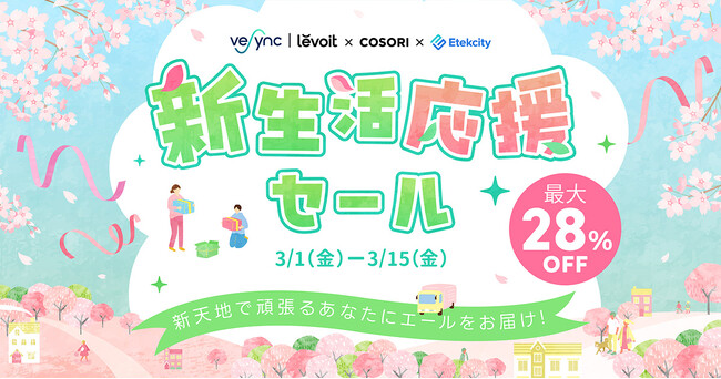 アメリカ発の小型家電メーカーのVeSync(ウィーシンク) Co., Ltd(本社:アメリカ カリフォルニア州)は、2024年3月1日(金)~2024年3月15日(金)の間、人気製品「Levoit空気清浄機」「COSORIノンフライヤー」を始め、最大28%OFFの「新生活応援セール」をVeSync公式ストア及びVeSync Amazon公式ストア、VeSync 楽天市場公式ストア、各正規販売店/量販店一にて開催いたします。