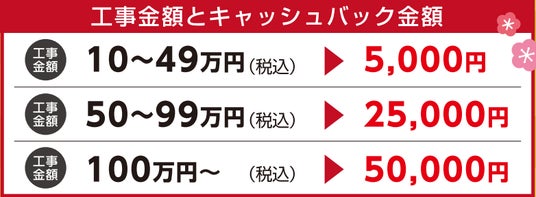 ※工事金額に応じてキャッシュバックの金額は変動いたします