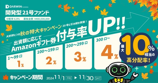 ※ 本キャンペーンは「DARWIN Funding 開発型21号」への確定された出資口数が対象となります。