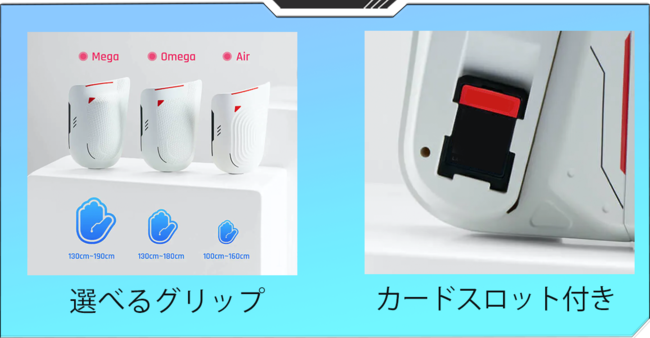 手の大きさや形に合わせて付け替え可能なグリップ部分や、グリップの中に隠されたカードスロットでゲーム体験を更に豊かにすることができます。