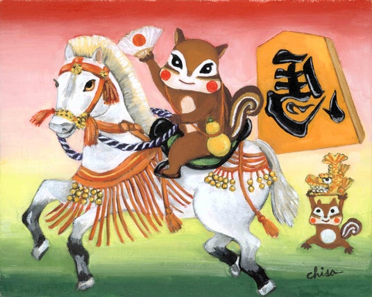 名古屋ご当地絵柄「福を招く左馬」(金のシャチホコ)油彩/3F 165,000円