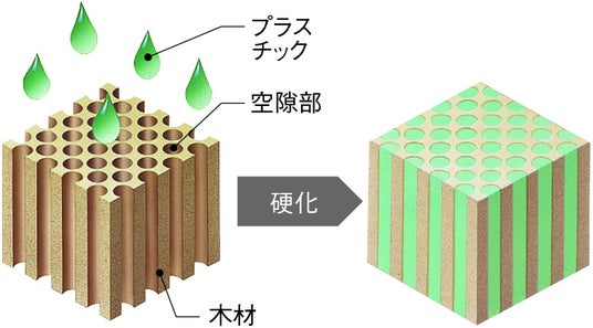 無垢の床材は、木そのものの美しさや素材感を味わうことができ、住宅のみならず公共・商業施設等においても底堅いニーズがあります。しかし、表面傷や紫外線による変色への配慮が必要とされており、長く綺麗に保つにはメンテナンスが欠かせません。そのような中、当社では、公共・商業施設向け床材として、木材組織にプラスチックを染み込ませて固める独自のWPC加工により、天然木を表面化粧材に用いながらも傷が付きにくく耐久性に優れた土足対応床材等をラインアップしており、これら製品の意匠性やメンテナンス性には市場から高い評価をいただいています。また、WPC加工は、杉など柔らかい材質の国産針葉樹においても優れた表面硬度を付与できるため、国産材や地域産材の活用ニーズにも、長年に渡りお応えしてきました。