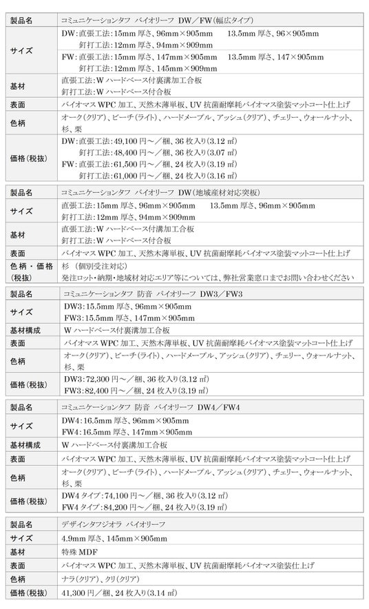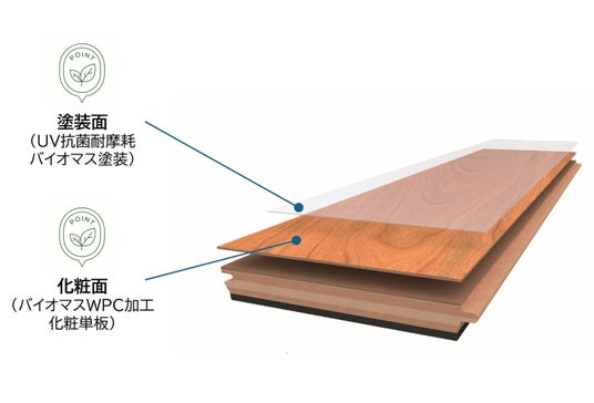 大建工業株式会社(大阪市北区、社長:億田正則)は、独自技術のWPC加工により、耐久性に優れた土足対応の天然木突板床材『コミュニケーションタフ』と『デザインタフジオラ』において、バイオマス由来材料を表面化粧に配合し、バイオマスマークを取得した『バイオリーフ』シリーズを6月21日より発売します。