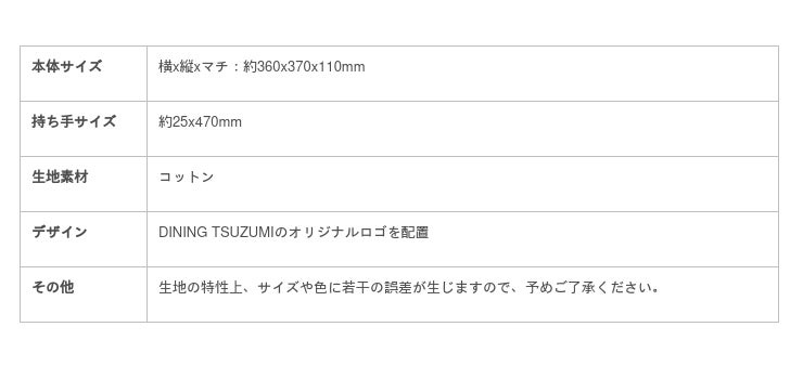 キャンペーン期間中、DINING TSUZUMIをご利用いただき上記対象メニューをご注文いただいた方に、限定ロゴ入りエコバッグをお一人様につき1つプレゼントいたします。