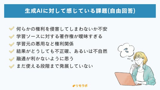 生成AIに対する課題第1位は「情報漏洩や不正使用などが不安」、学ぶ機会の少なさが不安を加速させている可能性も