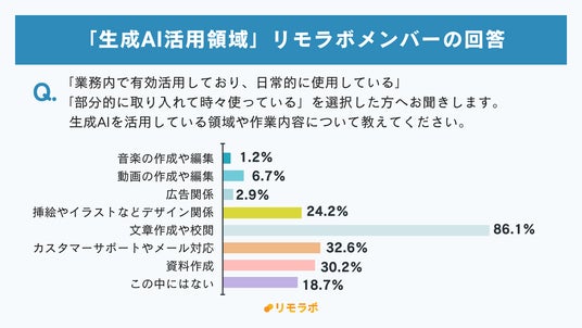 生成AI活用度が高いリモラボメンバーの中でも、上位3領域の結果は同様となりました。