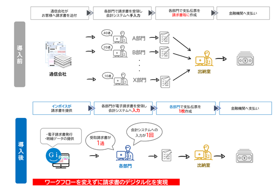 電話料金の請求書は販管費全体の中でも特に枚数が多く、利用部門が紙で受領していた為、職員の業務負担が大きくデジタル化による業務効率化が急務となっていました。