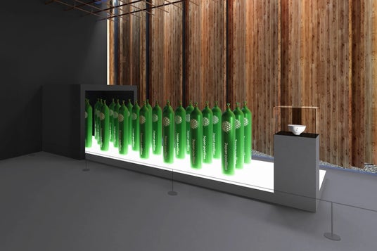 日本館は、「いのちと、いのちの、あいだに」をテーマとし、いのちを繋ぐ「循環」を「プラントエリア」「ファームエリア」「ファクトリーエリア」の3つのエリアで表現されます。「ファームエリア」では、ボンベに詰められたCO2を原料にGreen Planet製の器がつくられるイメージ(※)が展示され、「プラントエリア」では、同じGreen Planet製の器が水槽内で微生物によって分解されCO2と水に戻っていくイメージが展示されます。