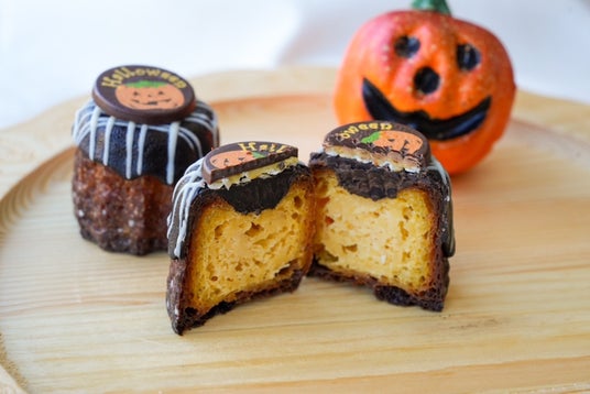 「ハロウィンカヌレ」は、生地に北海道産の「えびすかぼちゃ」をふんだんに使用した、ハロウィンらしさを感じていただけるカヌレです。