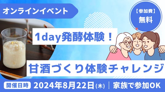 オリジナルの麹箱を開発し自宅で6種類の麹作りの伝承を行う一般社団法人日本麹クリエイター協会・糸結び麹で作った塩麹・醤油麹・甘酒を使用したモダン麹カフェ運営・発酵調味料や麹おやつの製造・販売を行う麹Style株式会社(https://koji-creator.com/ )(神奈川県鎌倉市 代表:鈴木ひろみ)は、2024年8月22日(木)に全国どこからでも参加可能なオンライン1day発酵体験イベント「甘酒チャレンジ」を開催します。参加費は無料でご家族皆様でご参加いただけます。日本の食文化をご家族で学び・体験できる時間をご提供し、お子様の自由研究にもご活用いただける内容となっております。