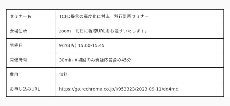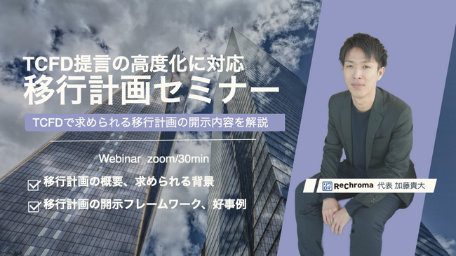 TCFD開示の高度化によって今後求められていく移行計画について解説した本セミナーのご案内をいたします。
