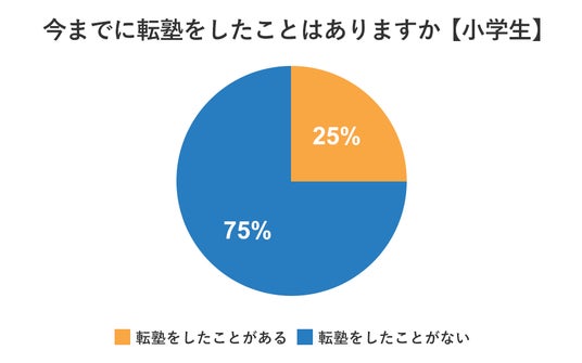 調査によると「転塾」を経験したことがある小学生は25%、転塾経験のない小学生は75%という結果となりました。1つの塾に通うメリットは、講師との信頼関係が築ける、一定のカリキュラムに沿って勉強を進めることができるなどたくさんあります。しかし、子どもが成長するにつれて勉強面での目標や塾に求めていることが変化する場合もあるかもしれません。転塾するしないに関わらず、親子で定期的に塾についてのすりあわせを行うと良いでしょう。