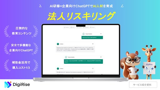 株式会社デジライズは「AIの利便性と感動を全ての人へ」をビジョンとして2023年に事業を開始しました。「法人リスキリング(R)︎」というAI研修(動画学習+ワークショップ)と自社開発の企業向けChatGPT「AI Works」を提供するサービスを、上場企業を筆頭に多くの企業様に導入を進めております。