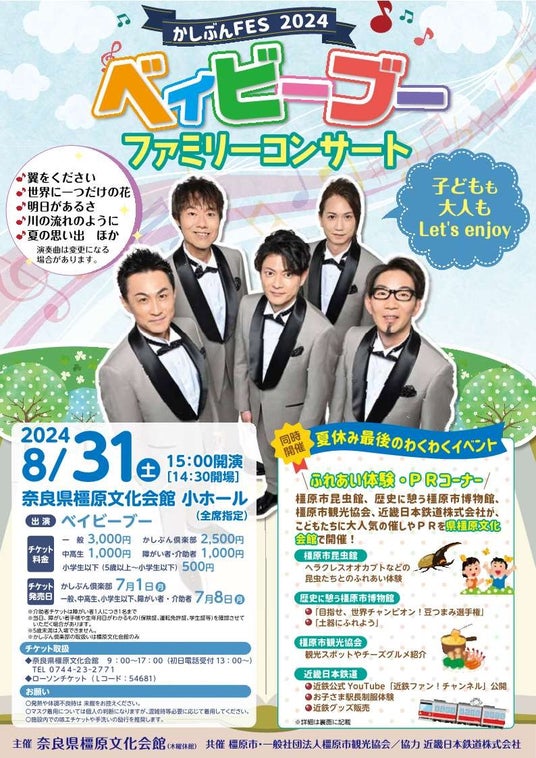 奈良県橿原文化会館では、地域がタッグを組み、夏休み最後の日にこどもをはじめ多くの方々に楽しんでもらおうと、初めて橿原市(橿原市昆虫館、歴史に憩う橿原市博物館)、橿原市観光協会、近鉄、近鉄百貨店がコラボして、「かしぶんFES 2024」を下記のとおり開催します。