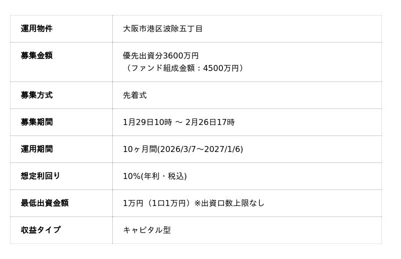 ※本物件の詳細情報およびお申込みは、募集開始後にファンドページにて公開いたします。