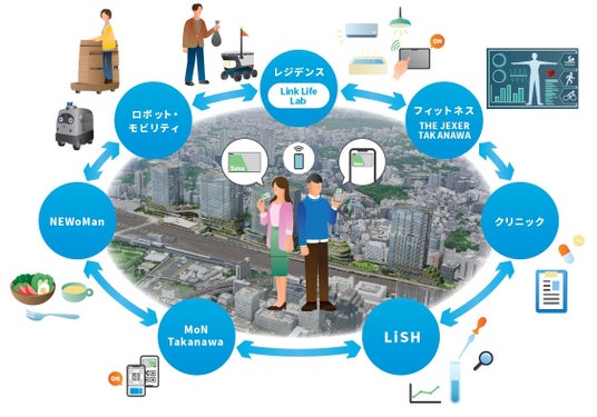 例えば、ビジネス創造施設「LiSH」から生み出された睡眠・食・運動機能向上などのサービスを提供し、そのサービスは「スマート健康ステーション(R)」のオンラインネットワークを通じて広域品川圏及び日本各地に展開されます。