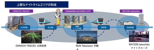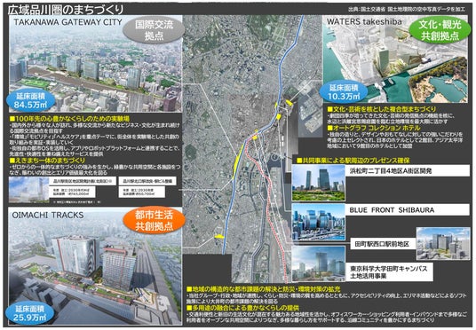 広域品川圏では、OIMACHI TRACKS、TAKANAWA GATEWAY CITY、WATERS takeshibaの