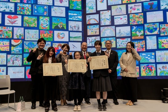 「平和な未来への想い」と「愛」をテーマに、日本とスリランカの6歳から15歳の子どもたちから作品を募集したデザインコンクール"0(ゼロ)"の表彰セレモニーが行われました。言語の違いを越えて心を伝え合える「絵」を通じ、国境や世代を超えた"交わり"を生み出すことを目指した本企画。子どもたちの作品がモーションや音楽とともにデジタル上で再構成される「人とAIの協働」の可能性が体感されました。