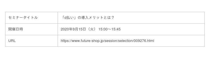「d払い」の概要や導入メリット、先行申し込みの流れ、キャンペーンに関して、2020年9月15日(火)にフューチャーショップが開催するオンラインセミナーでご紹介いたします。