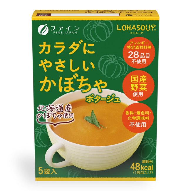 アレルギー特定原材料等28品目不使用のスープ。国産野菜を使用するなど、使用素材にとことんこだわっています。香料・着色料・化学調味料も無添加で、カラダにやさしい素材だけで仕上げました。