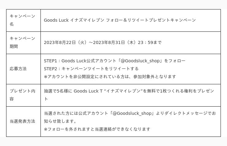 Goods Luck T “イナズマイレブン” を無料で1枚つくれる権利を抽選でプレゼントいたします。