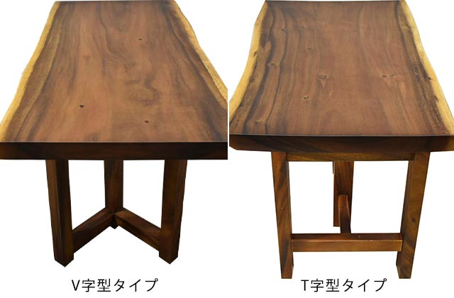 ダイニングテーブルの脚はV字型タイプ、T字型タイプの2種類からお選びいただけます。