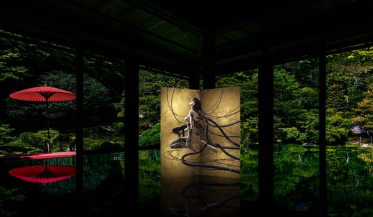 「TechnoByobu」は、最先端のヴィジュアルを、500年以上の伝統を誇る箔工芸を用いた屏風として再構築する新世代のアートピースです。職人たちの手仕事により屏風上に色鮮やかに描かれた作品は注目を集め、YMO(イエロー・マジック・オーケストラ)のアルバムアートワークをモチーフにした初作「TB-01:Electronic Fan Girl」は、大きな話題となりました。