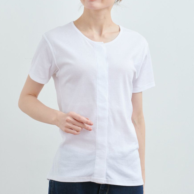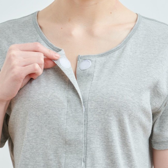 今回新登場する商品は、吸水速乾・消臭機能を備えた機能性のある綿素材を使用し、さらりとした肌触りとやわらかな着心地を実現しました。また、前開きの仕様にすることで手術・入院の際やその後の通院、介護や授乳対応など様々なシーンでお使いいただけます。