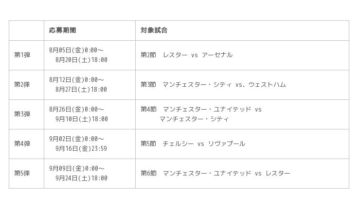 国内最大4 チャンネルのスポーツテレビ局、株式会社ジェイ・スポーツ(本社 東京都江東区、代表取締役社長 木下伸、以下「J SPORTS」 ※)は、イングランド プレミアリーグ 開幕節の放送カードが決定しました。そして、開幕を記念して豪華賞品が当たる勝敗予想キャンペーンを8月5日(金)から実施します。