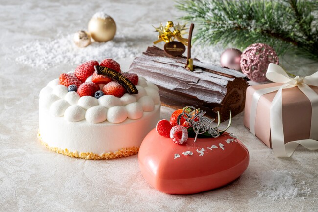 また、毎年人気を博すこだわりの生クリームと国産いちごを存分に味わえるプレミアムショートケーキ「いちごのシンフォニー」をはじめ、希少なブランド苺「スカイベリー」を贅沢に使用した華やかな「クリスマスミルフィーユ」、最高級カカオ72%のブラックチョコレートを使用したシックな装いの「ブッシュ ド ノエル ショコラ」もラインナップ。