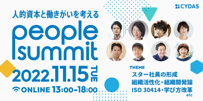 タレントマネジメントシステム「CYDAS PEOPLE(サイダスピープル)」の開発・販売を手がける株式会社サイダス(本社:東京都港区/沖縄オフィス:沖縄県那覇市、代表取締役:松田 晋、以下 サイダス)は、11月15日(火)に2部制・計5時間のオンラインイベント「人的資本と働きがいを考える ピープルサミット」を開催します。
