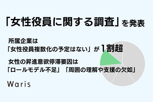 女性の多様な働き方への支援を通じて、すべての人の自分らしい人生を応援する人材サービス企業株式会社Waris(所在地:東京都千代田区、代表取締役:米倉史夏、田中美和、河京子、以下Waris)は、6月の【株主総会シーズン】や【女性版骨太の方針発表】に向けて、女性役員(経験者を含む)を対象に実施した「女性役員に関する調査 ~DE&Iの現状~」の結果を、本日発表いたします。