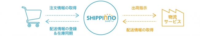 シッピーノは国内大手ECモールやカートシステムと倉庫サービスを繋ぐことで、出荷に関わる一連の業務を完全に自動化できるサービスです。