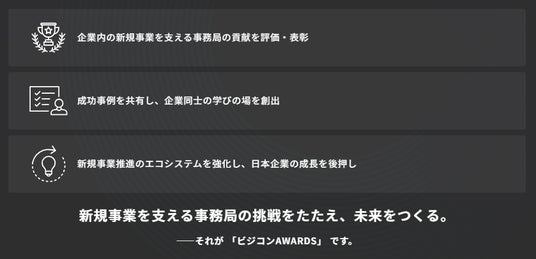 本アワードは、企業が開催する社内ビジネスコンテストの事務局とその取り組みに焦点を当てた表彰制度です。