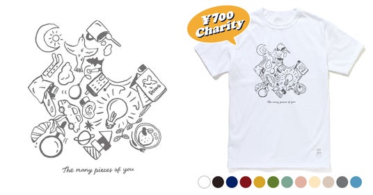 「JAMMIN×PIECES」1週間限定販売のコラボデザイン。Tシャツは価格:3,500円(チャリティー・税込)