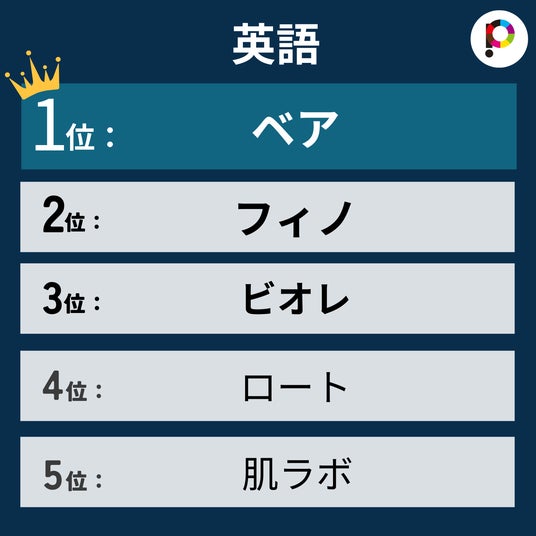 英語ランキング(英語圏)では、スキンケア製品が特に人気を集めており、日本の美容ブランドが英語圏の消費者に広く認知されていることが分かります。1位の「ベア」はニキビケア製品として注目されており、2位の「フィノ」や3位の「ビオレ」も、日本のヘアケア・スキンケア製品として広く支持されているようです。