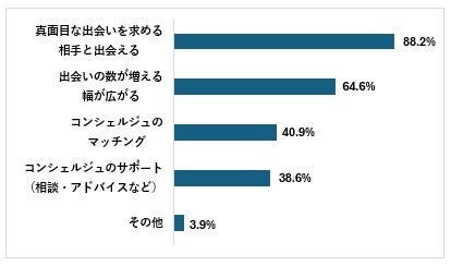また「出会いの数が増える・幅が広がる」が64.6% と続き、単に出会いの機会だけでなく理想の相手との出会いを期待していることが分かります。