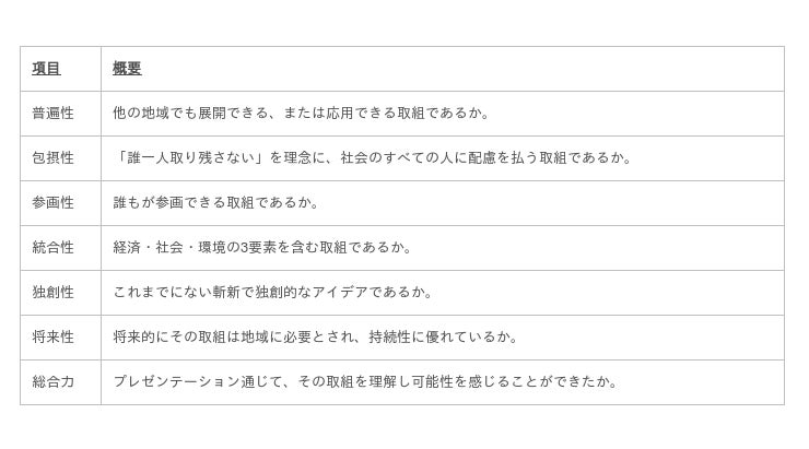 ・下記7項目を審査項目と定め、各5段階評価で審査採点を行い、最終的に視聴者投票の採点を加点した結果にて、高校生6チームの中から最優秀チームを1校選定します。