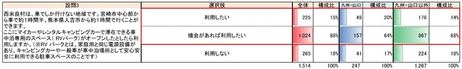 西米良村への車中泊(RVパーク)ニーズとしては、「利用したい=15%」+「機会があれば利用したい=68%」